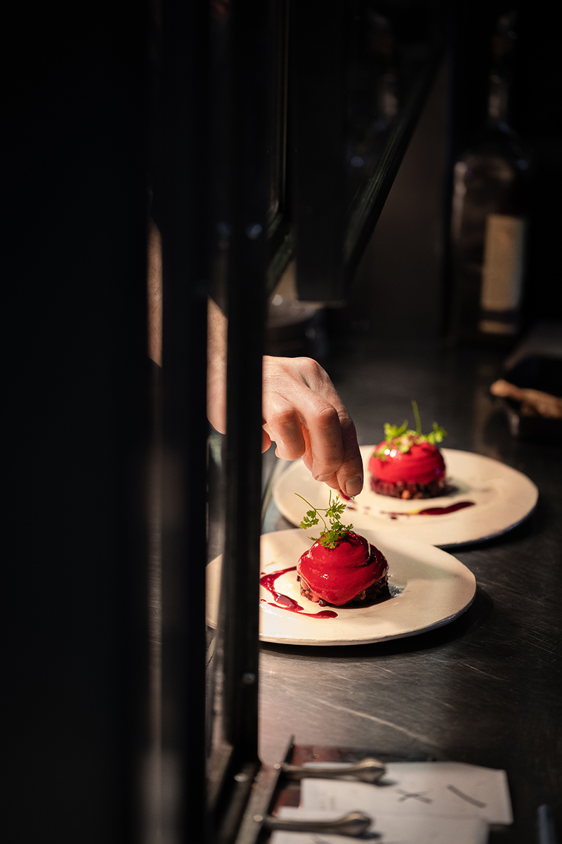 Tartare de bœuf / calvados- 23 - Côte à l’os à la braise (2 pers.) -36/pers- Saint Jacques aux noix,salsifis-34